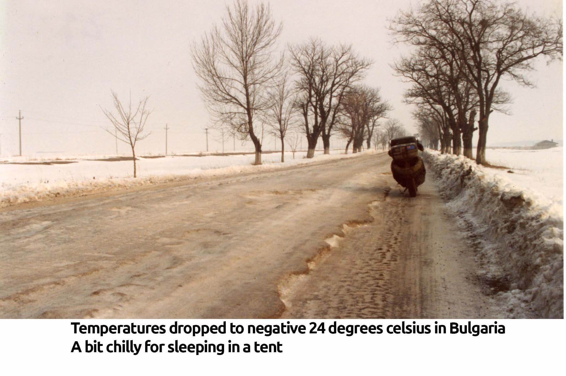 He then looped back through India, Pakistan, and Iran—despite there being no road between the countries at the time. He even braved an Eastern European winter where temperatures plummeted to -24 degrees Celsius. "The snow on the back of the bike didn’t melt for three months," he says. "The bike was outside 24/7 and never seized up."