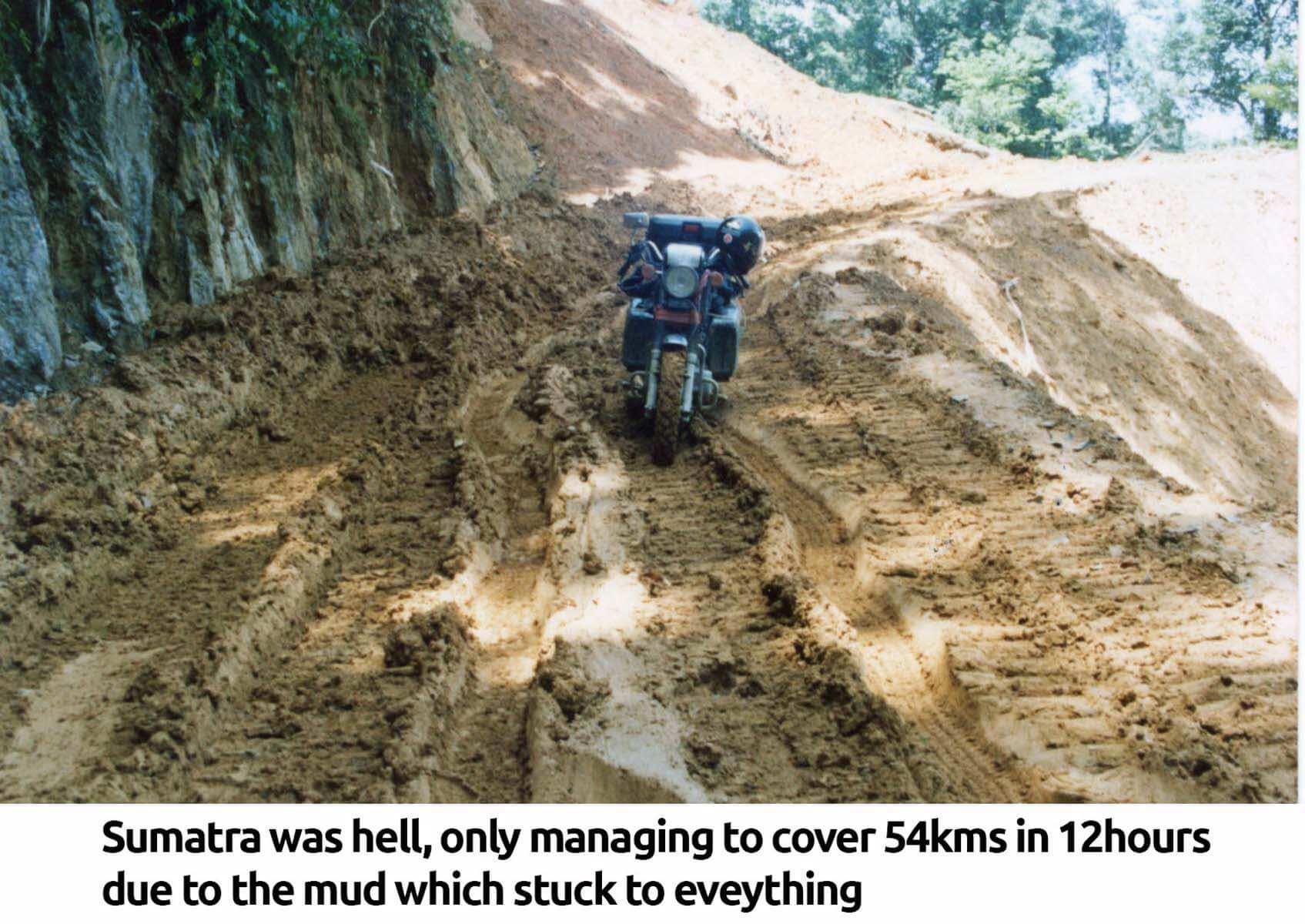 One of the toughest days was Sumatra—12 hours of riding in the mud to cover just 54km. "Physical constraints slowed me down, not the bike," he says.