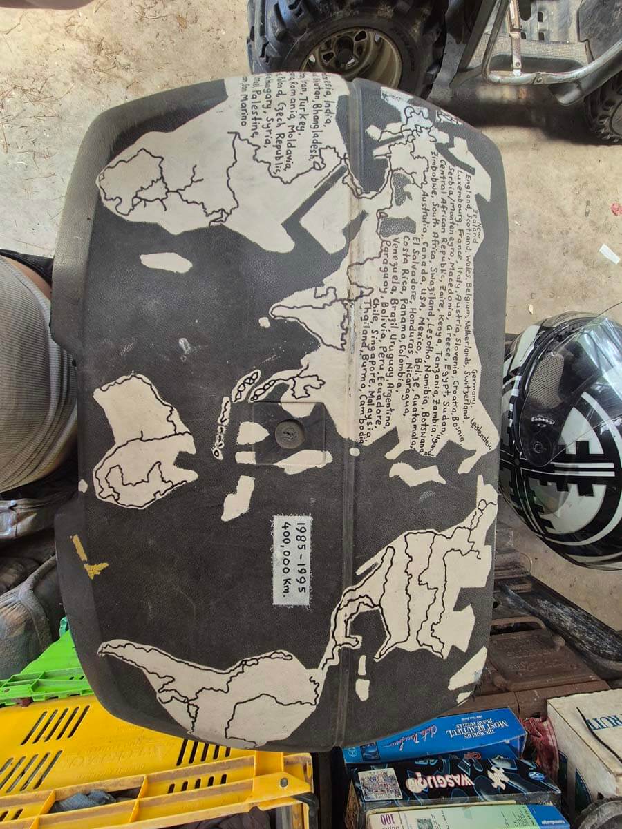 With fuel stops often up to 900 kilometres apart, his expanded 67-litre fuel tank was a necessity. "The bike’s best day was 1450km in the Atacama Desert in northern Chile—no roads," Michael remembers. "The worst day? Just 54km in the jungle of Sumatra."