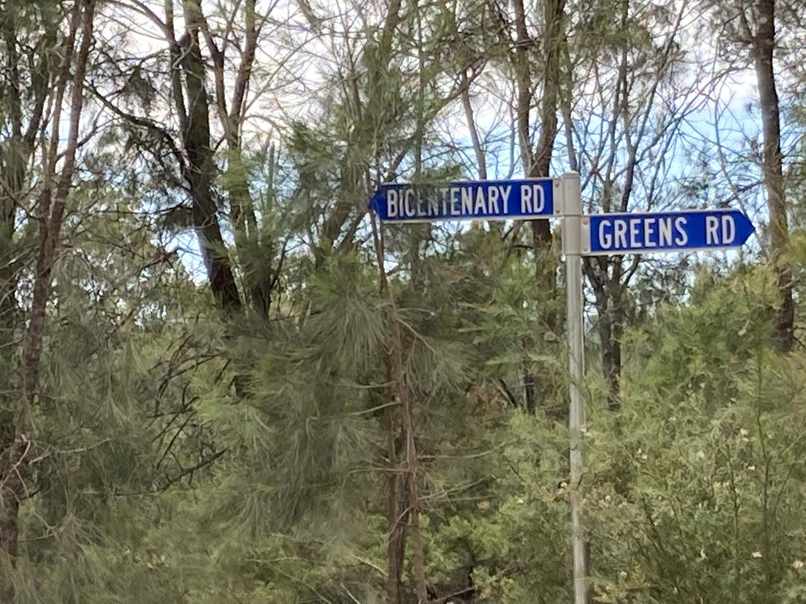 After winding about a bit, mainly I think to stay on the ridge, the trail reaches yet another junction; this time it and Greens Road join up and become Bicentenary Road. Greens Road runs down to the Hawkesbury by way of a couple of nice and tricky hairpins and eventually back to Lower Portland.