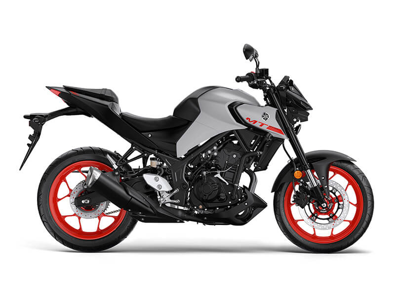 The 2020 MT-03 sports an aggressive new look that follows the hyper naked family theme. Its predatory twin-eye face projects the moodiest stare, and new upside-down forks and a restyled wide-shouldered fuel tank underline the shared MT dynamic.