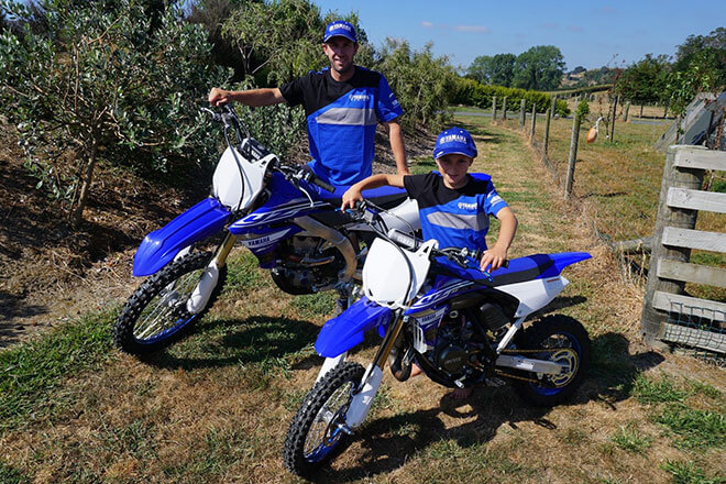Bay of Plenty's Ben Townley (Yamaha), with his eldest son Levi, excited about moving into the future with Yamaha. -