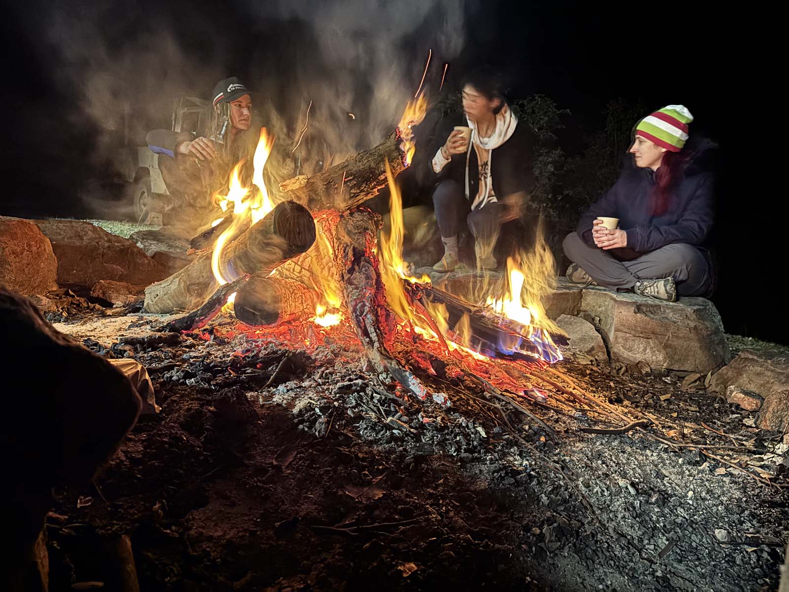 Dinner is prepared by Jeremy with gallic flair on the BBQ – the French native wears many hats and chef is just one of them. The bench racing that started over dinner continues around the camp-fire until it’s time to hit the swag, tent or camper.