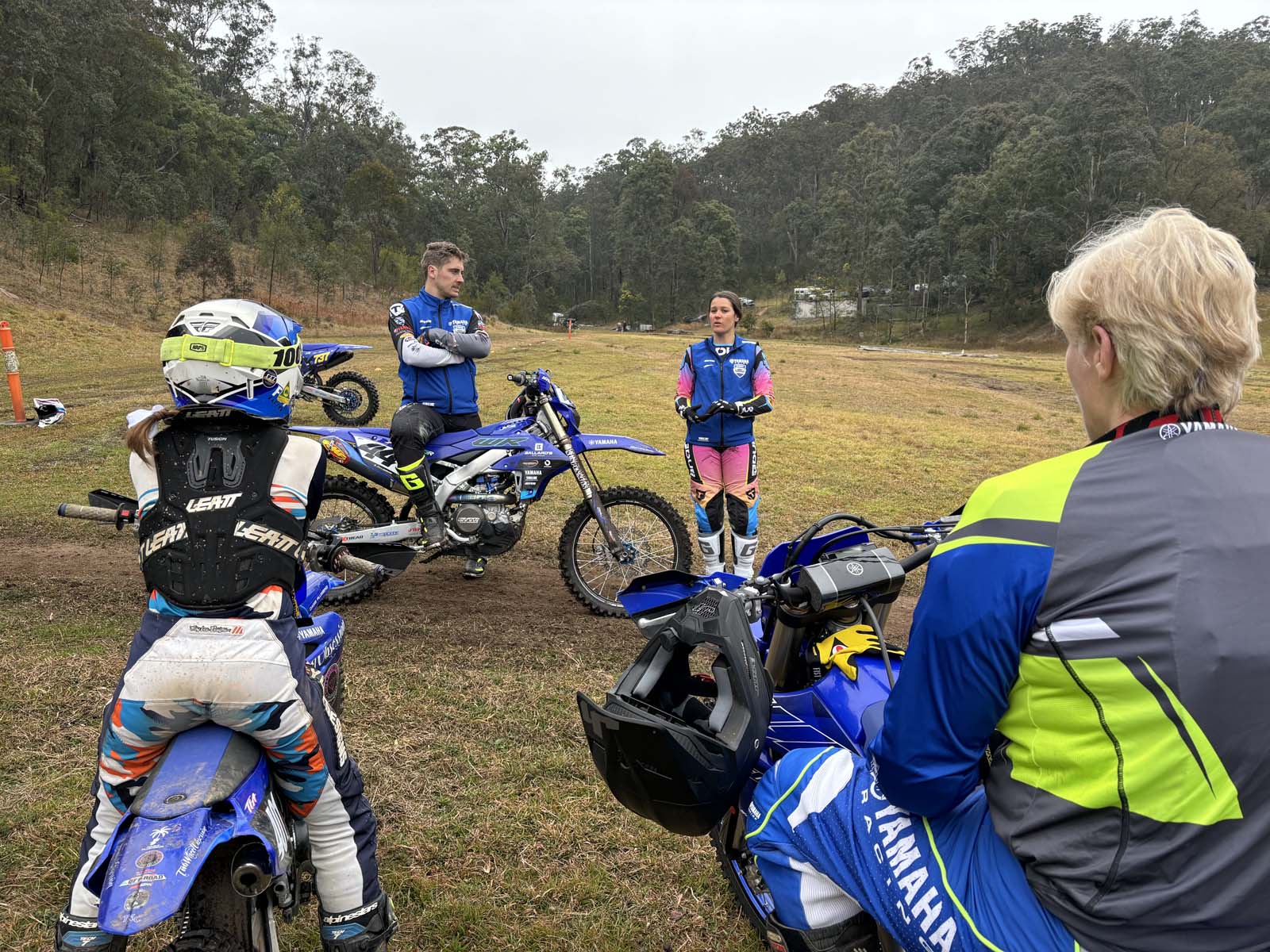 enduro ladies appear nervous as they tackle the track under Jess and Jeremy’s watchful gaze. “This is a great starting point to see where everyone’s at and what needs to improve, but the first ride is always a nervous time – I get it, I’ve been here before. Girls tend to think a lot about who’s watching and it can affect them,” explains Jess, one of Australia’s most decorated enduro riders who knows plenty about performing under pressure.
