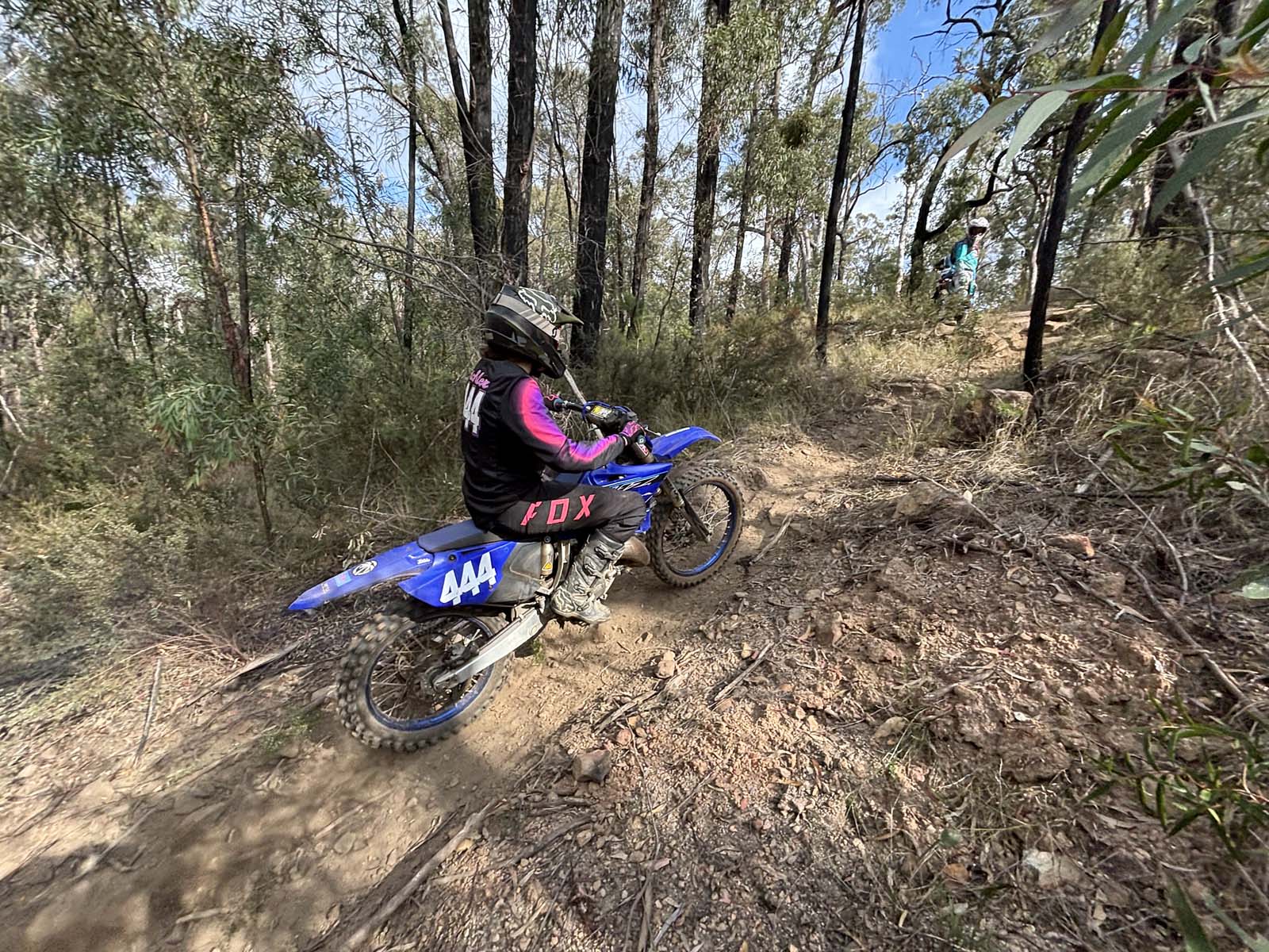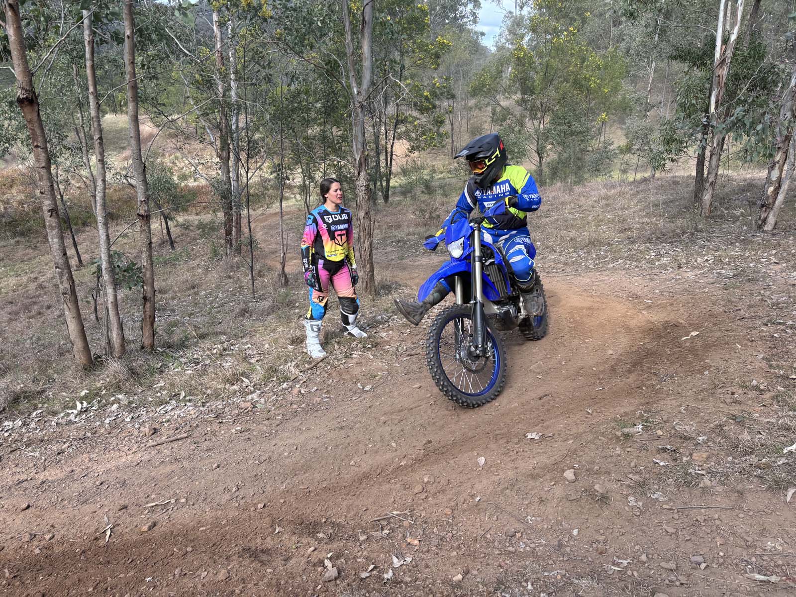 Kat is sitting on top of a steep and rocky descent with Jess Gardiner’s advice ringing around her helmet – dirt bike riding is 70 per cent mental. If you think you can do it, you probably will. If you don’t think you can, then guess what – you won’t. If Kat focuses on the washed out rut half way down then that’s where she’ll end up…