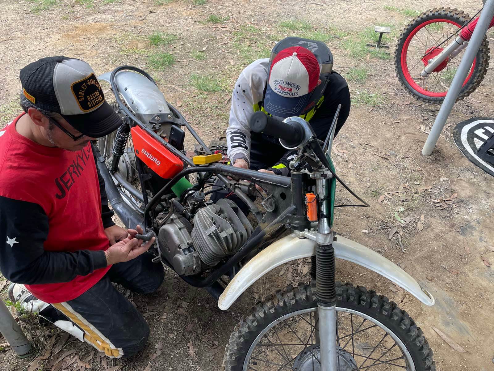 With no time to fix the carb issue, Sean then rocked up at the Sunday Slide in Somersy, NSW. His first lap resulted in another long walk across the infield, pushing the lifeless DT. The carb was removed off and a missing needle clip and oversized main jet was discovered. With more help from Jerkyl Brad in the form of a smaller main jet and a new spark plug, the DT250 fired into life and ran crisp for the rest of the day.