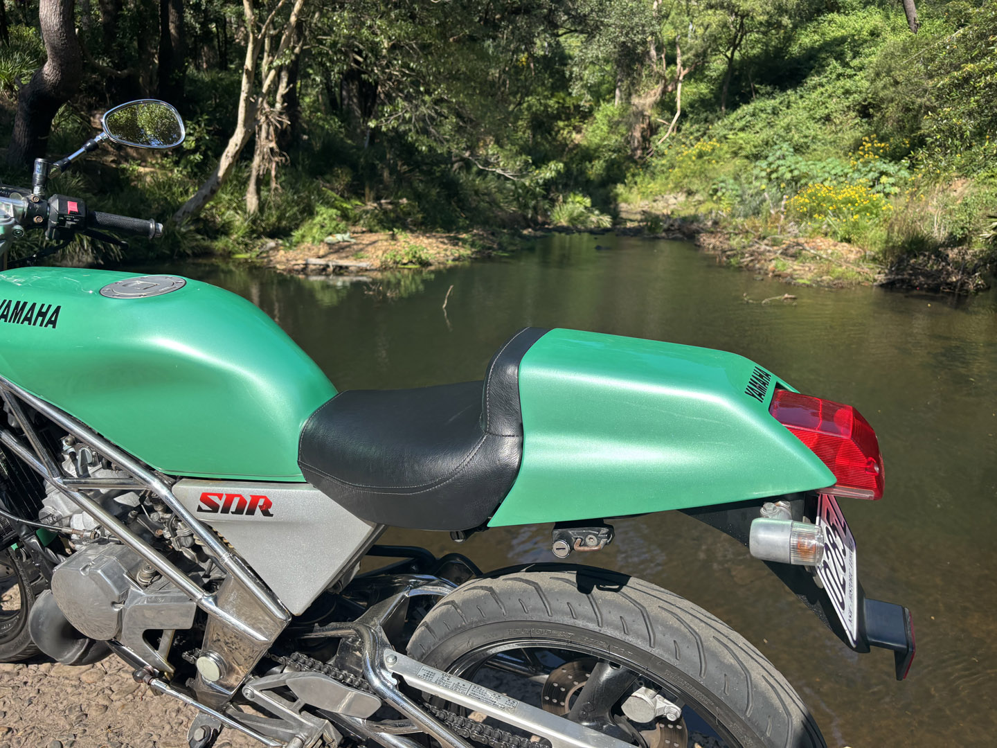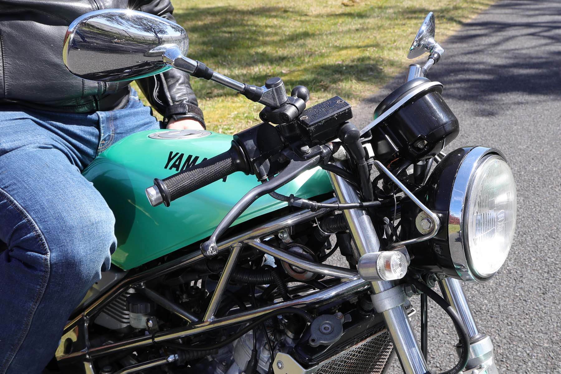 On the road, the SDR feels and handles as light as it looks. Pete rides it on local roads near home and occasionally through the twists of Sydney’s Royal National Park, where its agility comes alive. “It corners tight, feels incredibly light, and lets you really get low, especially on roads like the Royal National Park,” he says. Yamaha claimed a top speed of 100 mph, and while