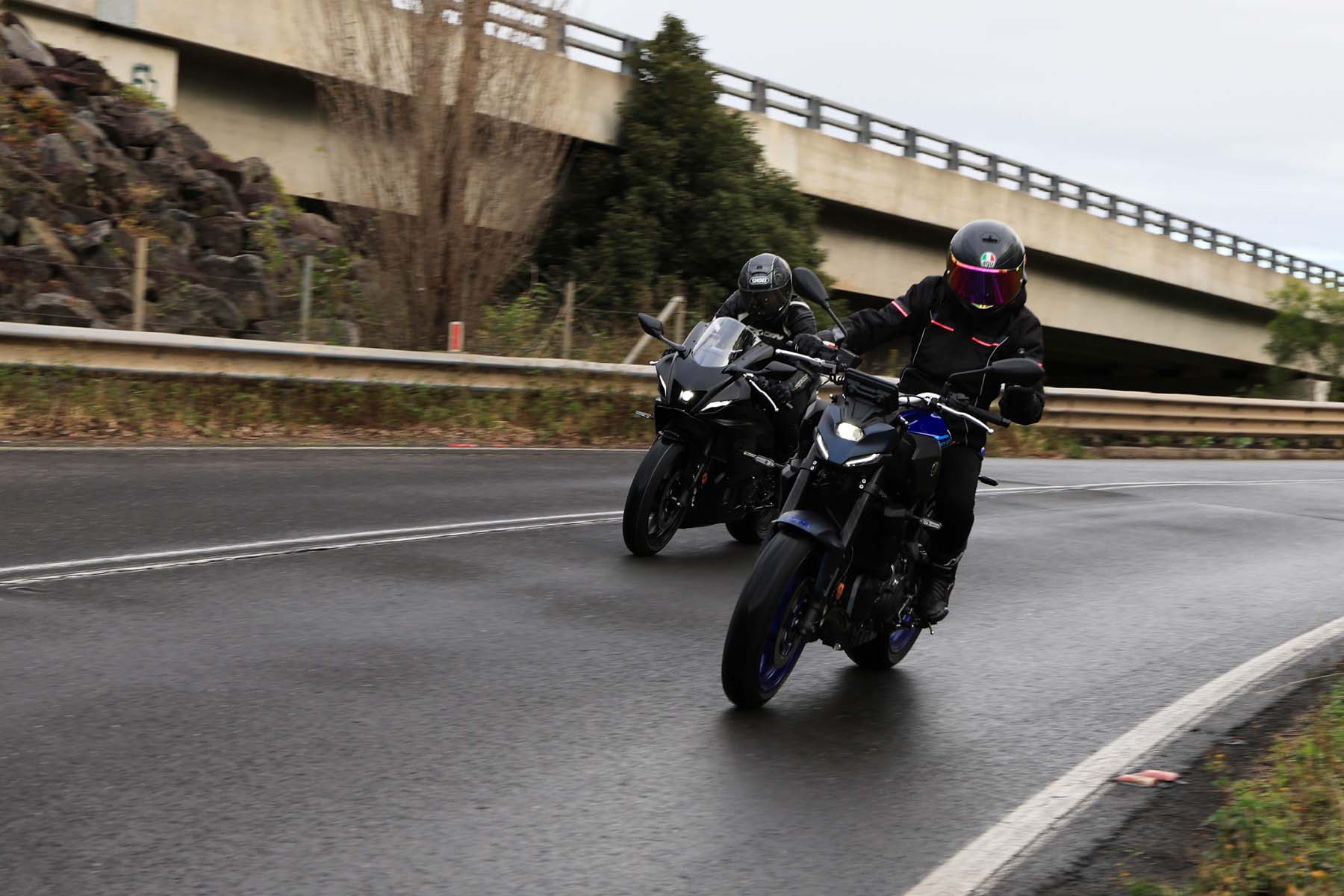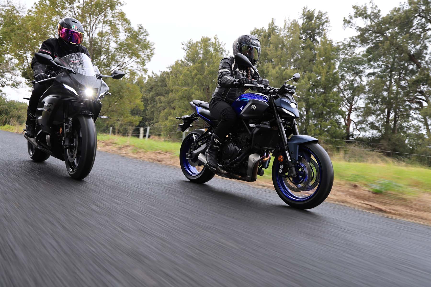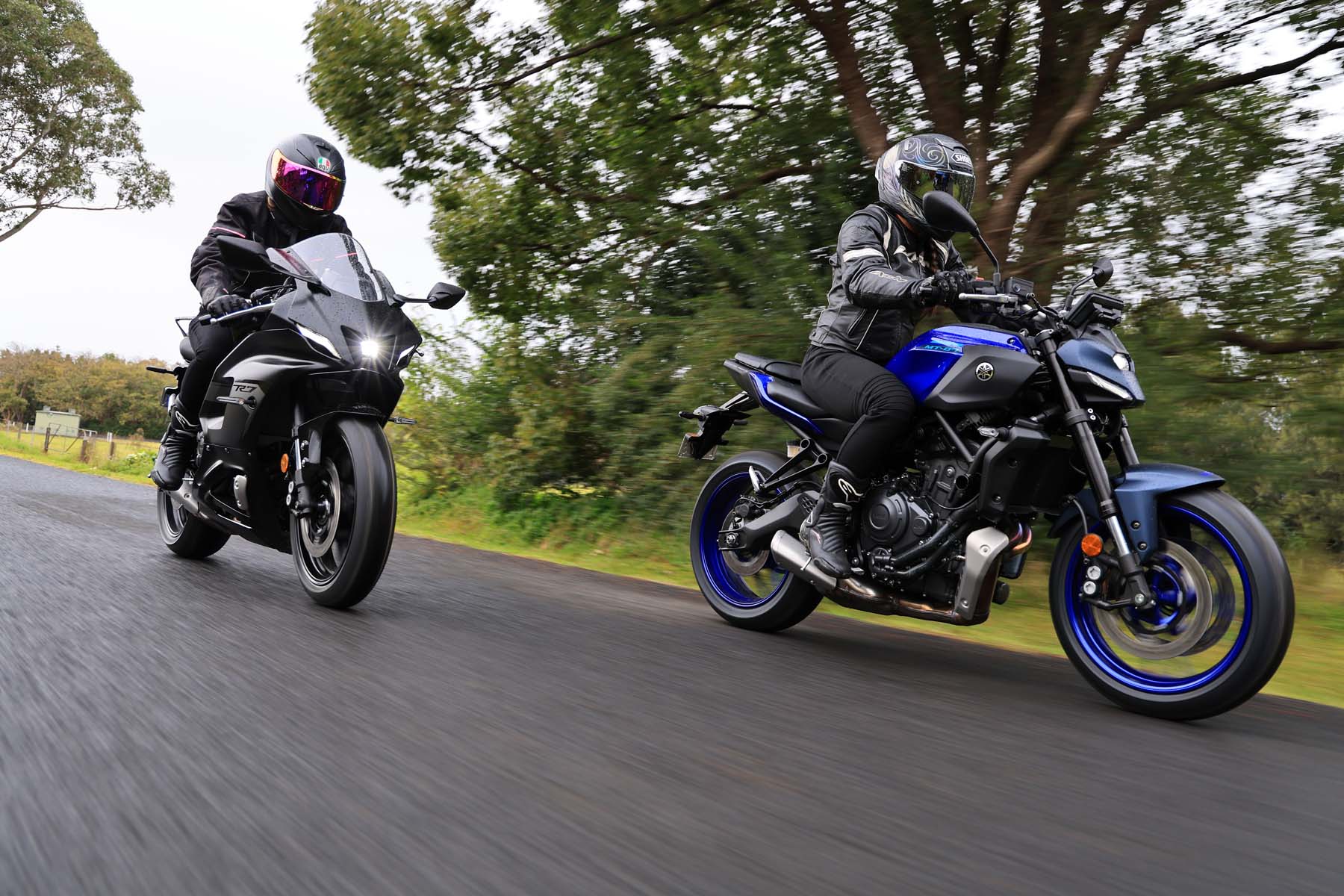 In contrast, Natasha, arrived at the meeting point riding a YZF-R7 Matt Black, captivated by its sporty intent, something she loved about here first motorcycle, a YZF-R3. "You’re so tucked in on the R7; it’s a much racier seating position," she explains. “The footpegs and seat are higher than the MT-07 providing a sporty forward-leaning stance to emphasise its racing heritage,” she adds, "It’s not uncomfortable, but you’re certainly slanted forward, and the fairing slices cleanly through the wind."
