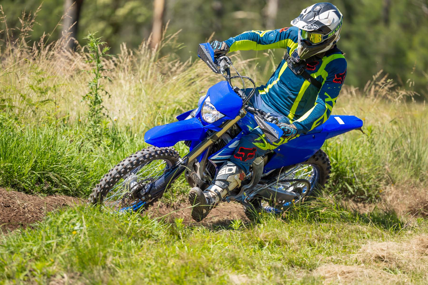 With 24 years of evolution and sharing an almost identical motor to its motorcross cousin the YZ250F, the WR absolutely screams. Yamaha rarely go year-to-year without updates to the motor, suspension, chassis etc – and it shows. The electric start fires up the fuel-injected DOHC motor with ease every time, although semi-reluctantly when in gear. The cable clutch is as smooth in its function as any hydraulic system, and the pull is every bit as light.