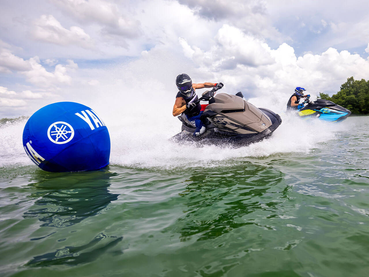 Back to win more chequered flags in 2022, Yamaha's GP1800R- SVHO supercharged and GP1800R-HO naturally aspirated race craft offer peak performance with their deep footwell aggressive deck design, tilt-adjustable race inspired handlebars , Connext helm control with multi-color LED display and Auto Trim function with Cornering Control and Launch Control modes.