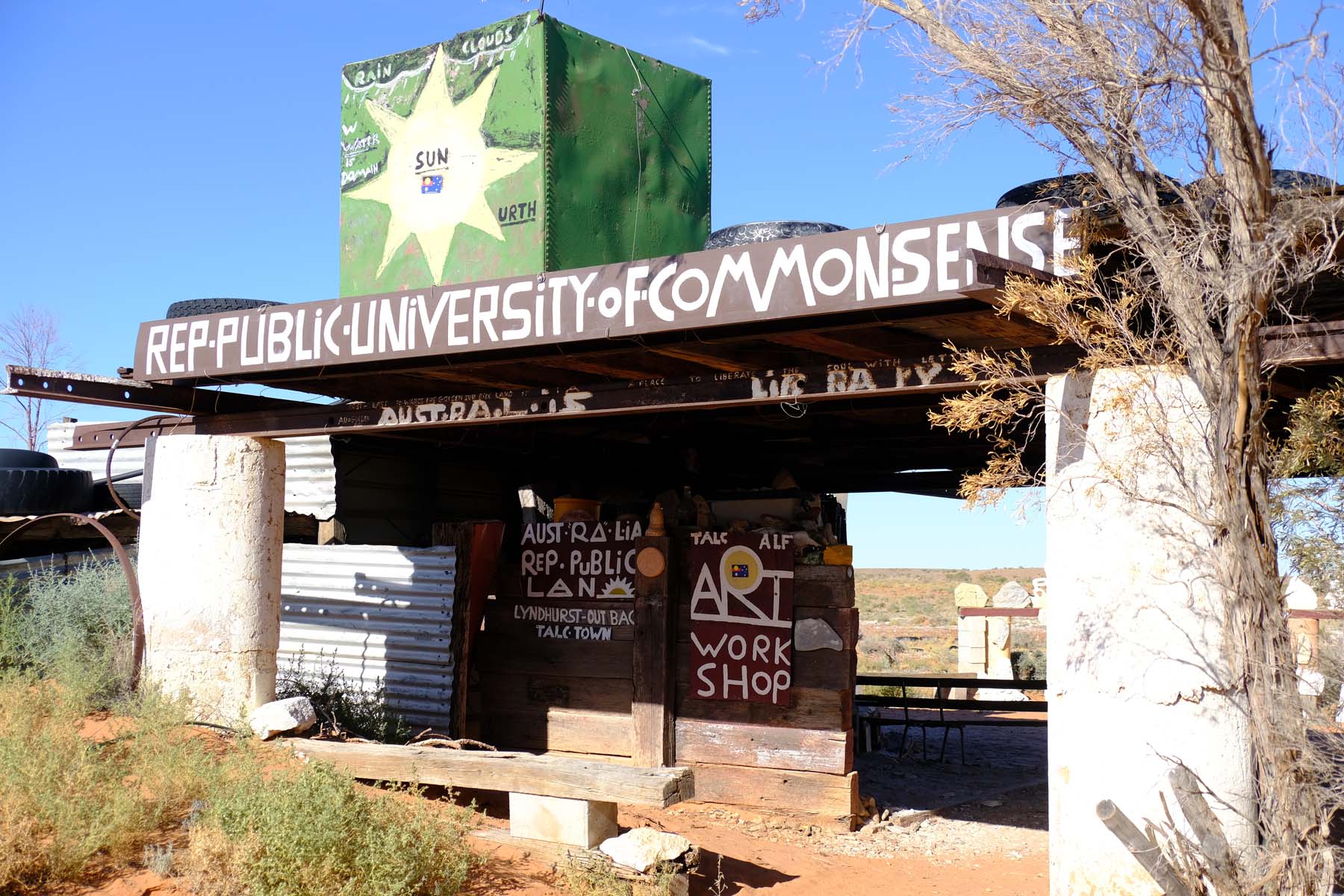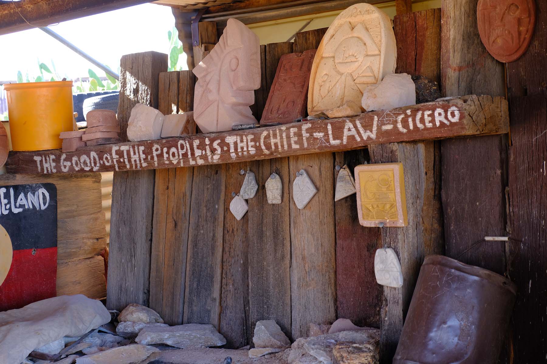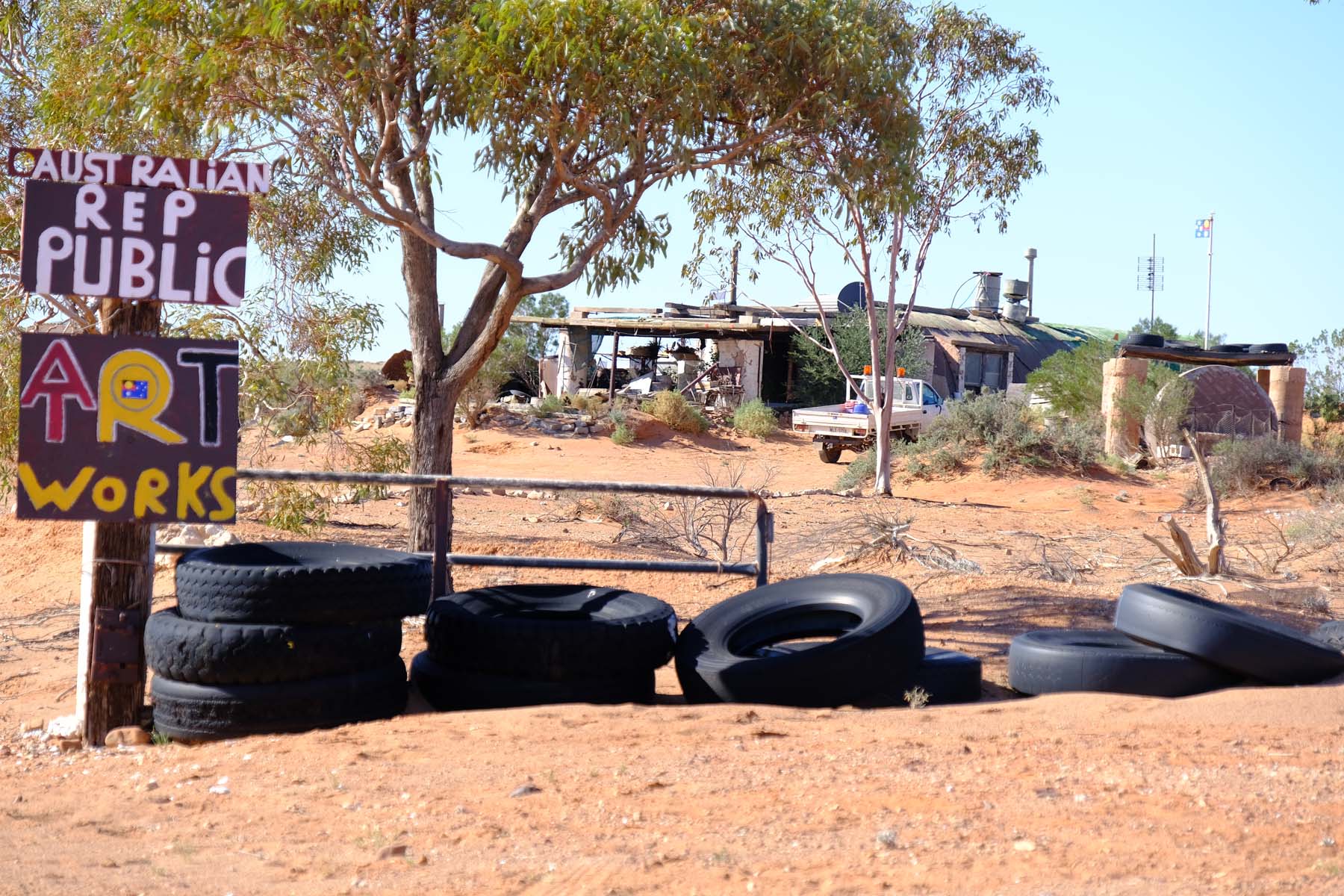Alf welcomes visitors. He has also redesigned the Australian flag, and he proudly showed me his design in which the red, black and yellow Aboriginal flag replaces the Union Jack, simply and effectively swapping the colonial reference for an indigenous one. He gave me a flag sticker as I was leaving and I am having trouble deciding on somewhere worthy of it.