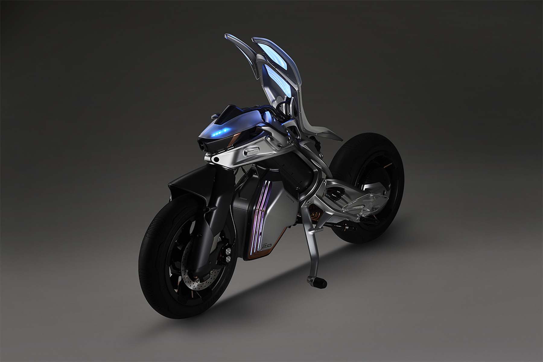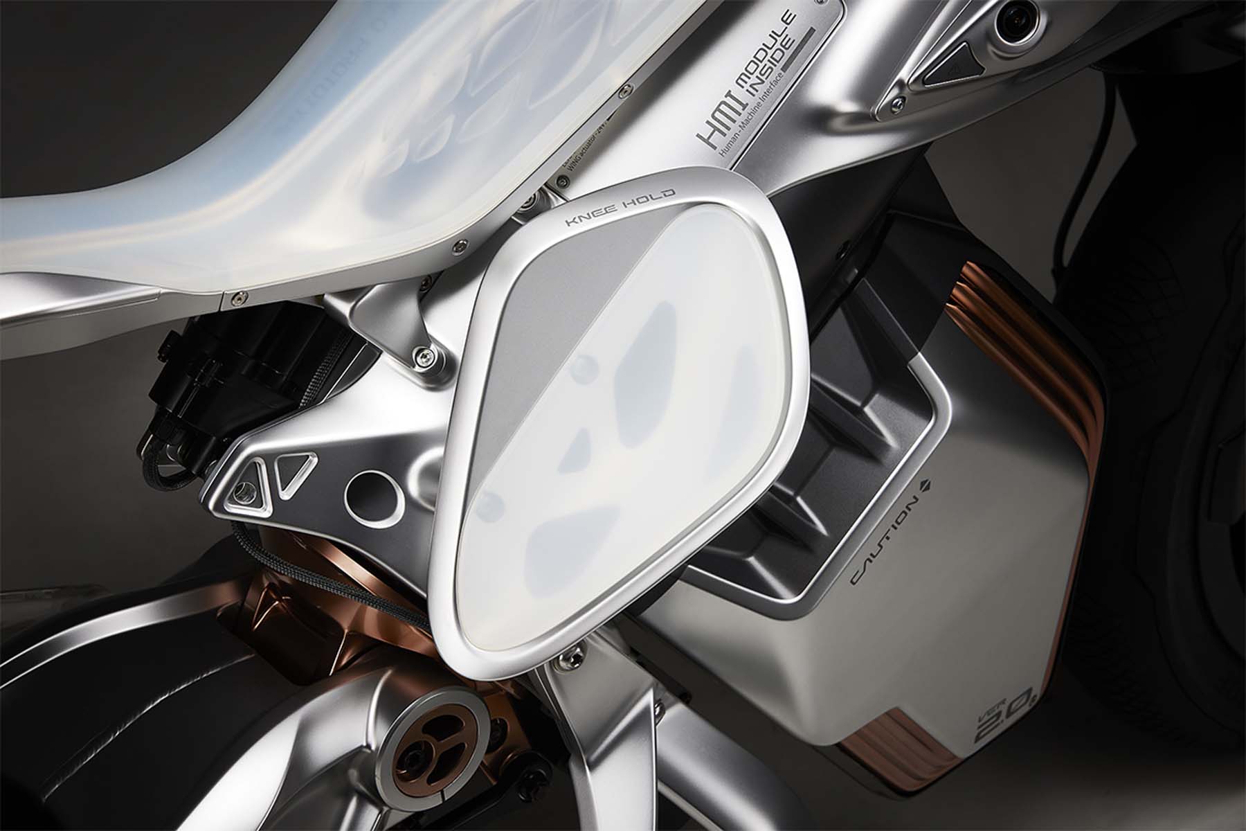 In order to create new experiences of Kando* the MOTOROiD2 experimental proof-of-concept model employs artificial intelligence and explores ways to create new forms of personal mobility in which the rider resonates harmoniously with the machine.